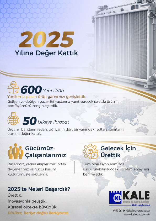 Kale Oto Radyatör ve ürünleri hakkında yeni bilgileri sizinle paylaşmamızı isterseniz aşağıdaki bilgileri doldurarak E- bültene üye olabilirsiniz.